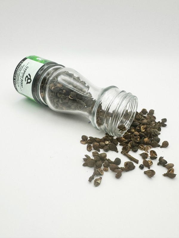 Les baies de Ganshu, issues de l’espèce Zanthoxylum, sont une épice végétale rare originaire des hauts plateaux de l’Ouest camerounais, au cœur du pays Bamiléké, où elles sont récoltées sur de petits arbres puis séchées selon un savoir-faire traditionnel transmis de génération en génération.