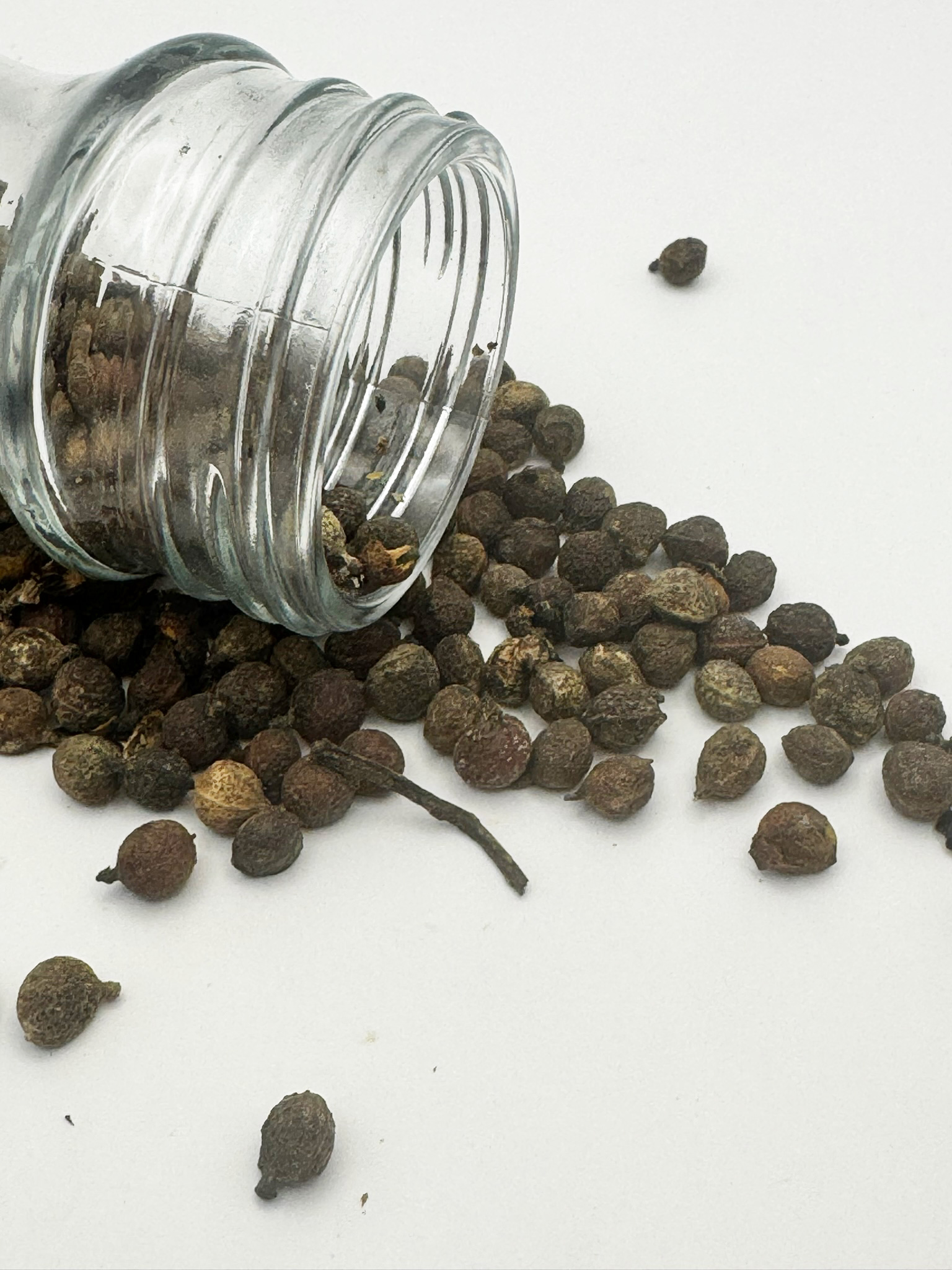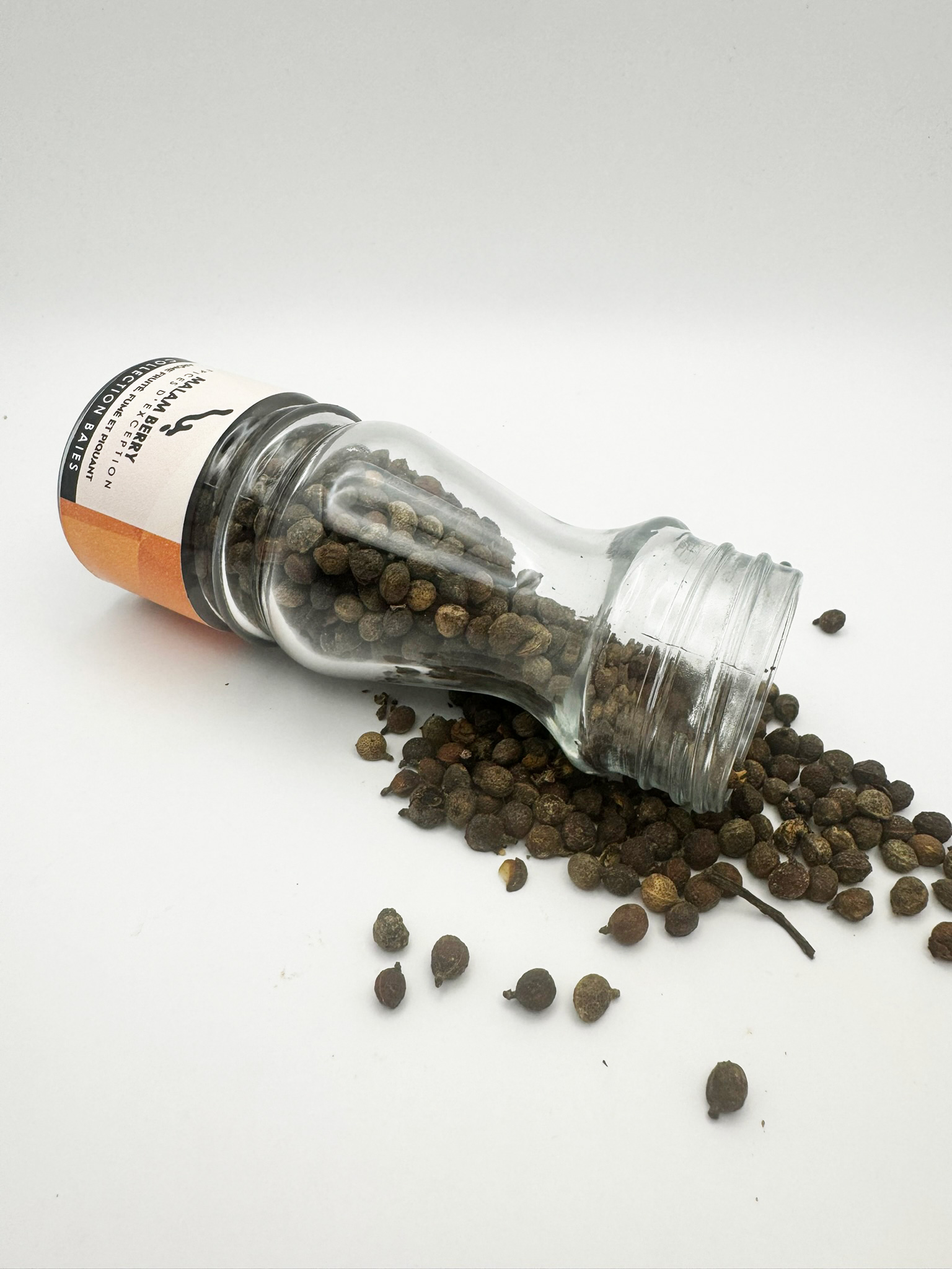 En bouche, la baie de Malam est moins piquante que le poivre noir, mais il développe des saveurs boisées, légèrement amères et subtilement épicées, avec une dimension fumée très marquée qui sert davantage à parfumer les plats qu’à les rendre piquants.