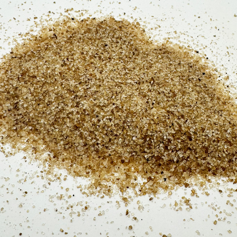 Le sel fumé à la pomme de associe un sel marin naturel du Pakistan au fin arôme de bois de pommier brûlé à froid. La granulométrie fine de 0,2–1,0 mm assure une répartition homogène et une note fumée discrète mais bien perceptible. Les tons chauds bruns et jaunes du sel fumé soulignent son caractère artisanal et authentique.