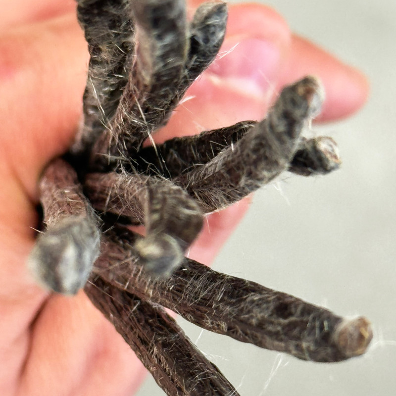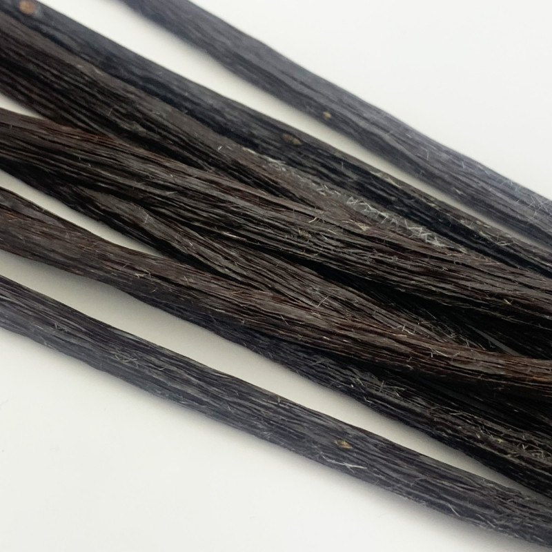 Celle-ci est une autre incroyable Vanille Planifolia moins commune cependant venue de Thaïlande avec des qualités aromatiques exceptionnelles, une forte teneur en vanilline et des cristaux en forme de diamants.