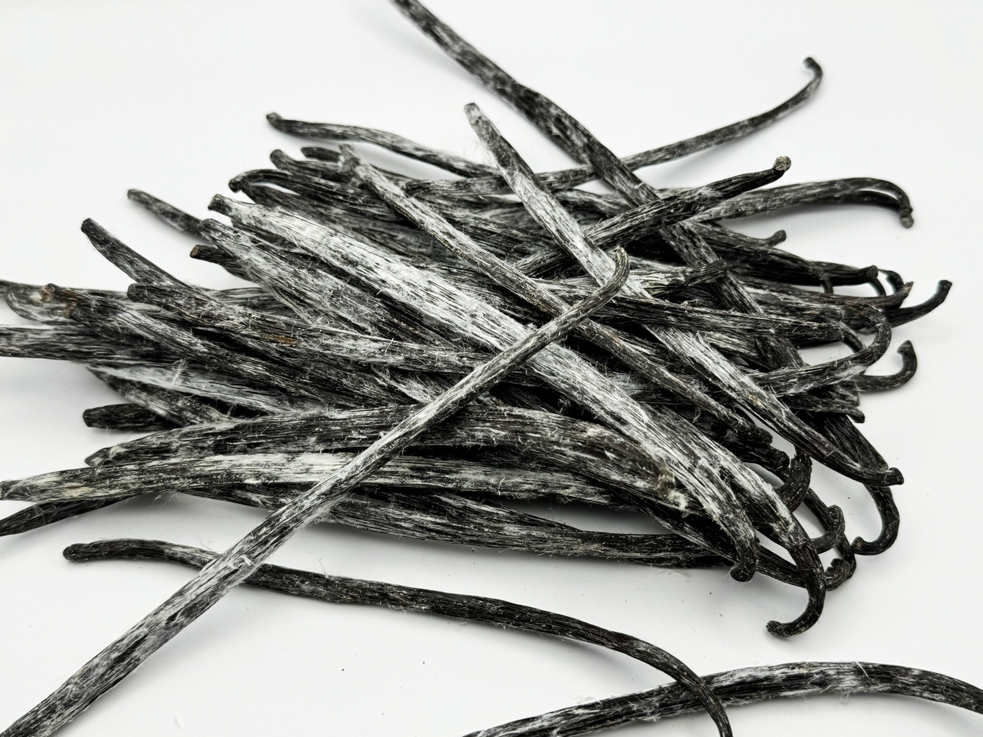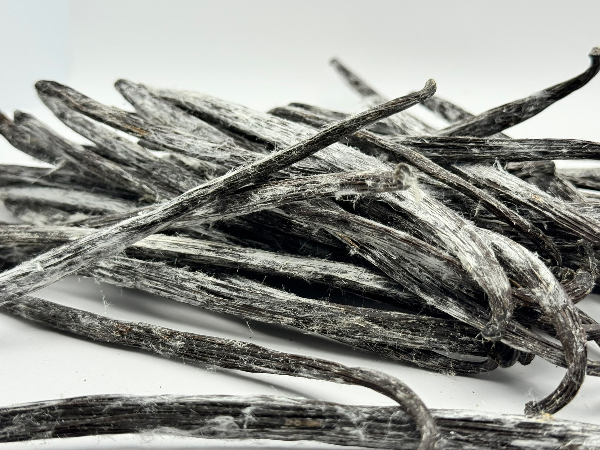 Les cristaux de vanilline sont un concentré naturel et signe de l'excellente qualité des gousses de vanille. Vous pouvez les reconnaître car ils brillent à la lumière et ressemblent à des épines blanches ou à de minuscules « diamants » de vanille littéralement brillants et pointus, comme les résidus de THC sur d’excellentes plantes de marijuana.