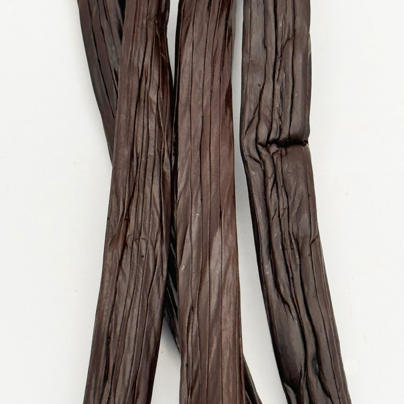 Une production limitée et même rare. Probablement l'une des meilleures origines de toutes avec une teneur exceptionnelle en vanilline et des givres ou givres fréquents sur les cosses. Développées à partir d'un hybride "Vanilla Planifolia", les gousses sont noires, huileuses, souples et épaisses avec un fort arôme et une saveur typique de vanille.