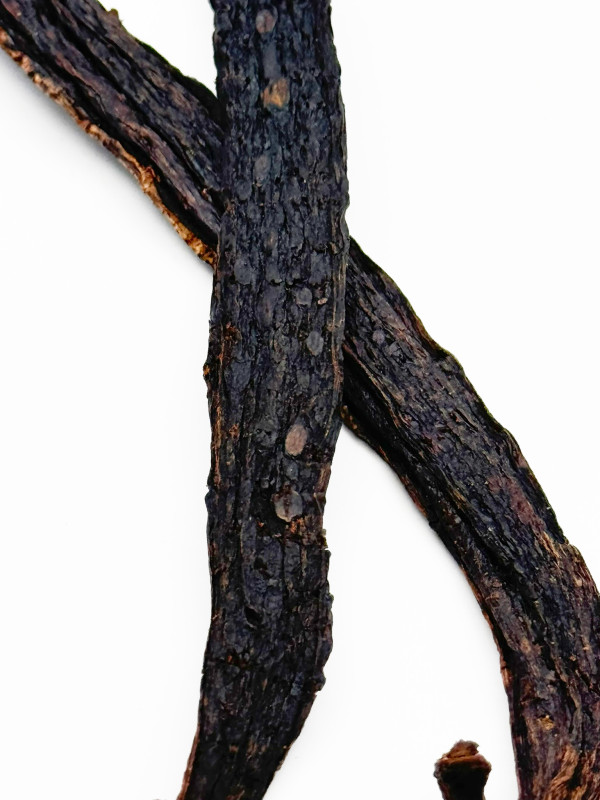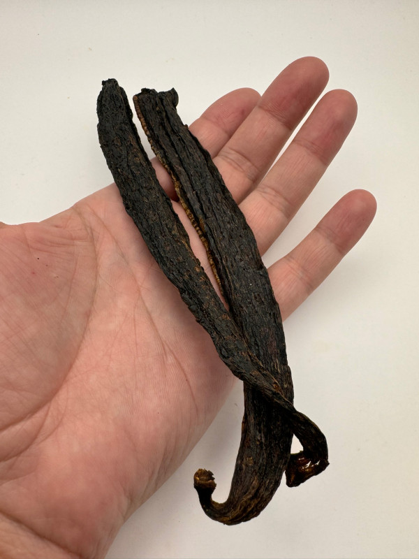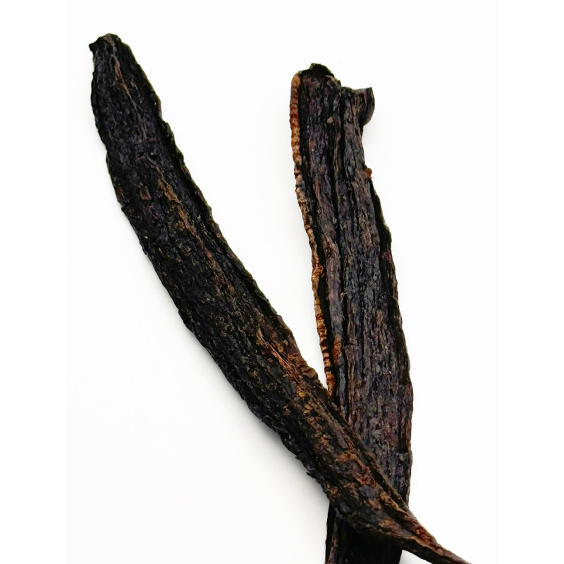Ingrédients : Vanille Pompona Amazon Bio Gourmet / Origine : Pérou / Terroir : Barrio Huayco Tarapoto / Récolte : 2022 / Affinage : Naturellement ou manuellement pollinisée, mure et séchée au soleil / Affinage : > 6 /12 mois / Humidité : 25 à 40% / Vanilline : 0,988% / Alcool anisique : 0,350%