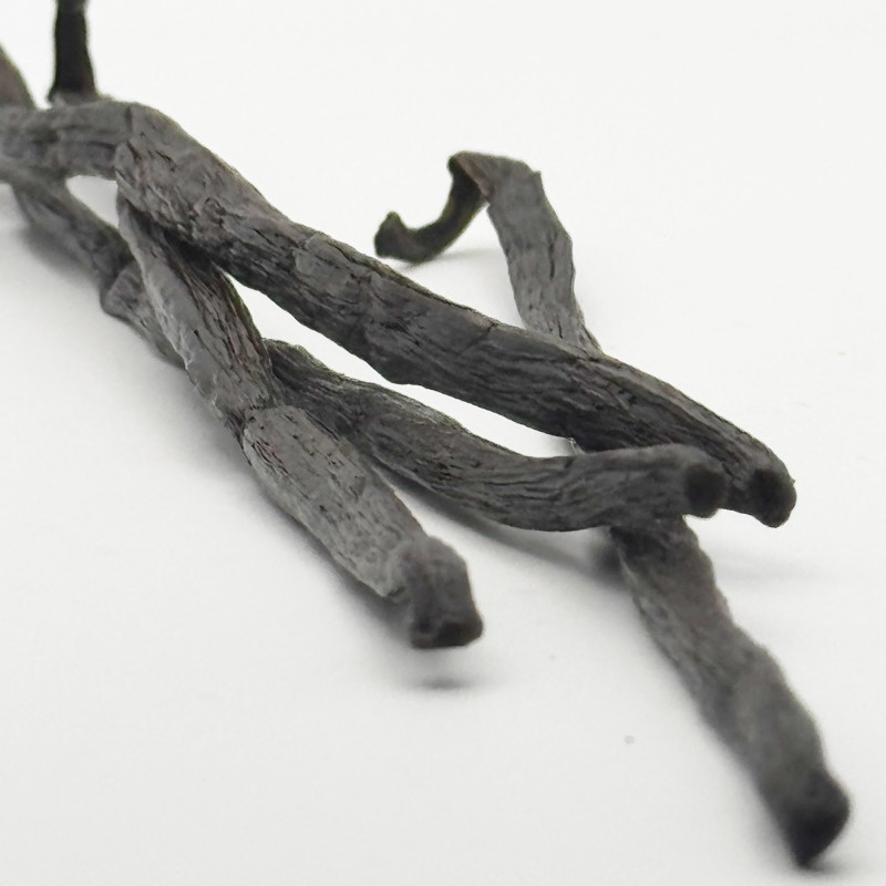 Ingrédients : Vanille Planifolia Bourbon Bio Gourmet / Origine : Île de la Réunion (IGP île de La Réunion) / Terroir : Saint-Pierre / Recolte: 2022 / Affinage: Echaudée et sechée au soleil / Affinage: > 6 mois / Humidité : 35% / Vanilline : +/- 2,2%