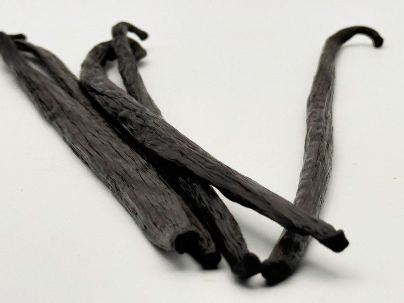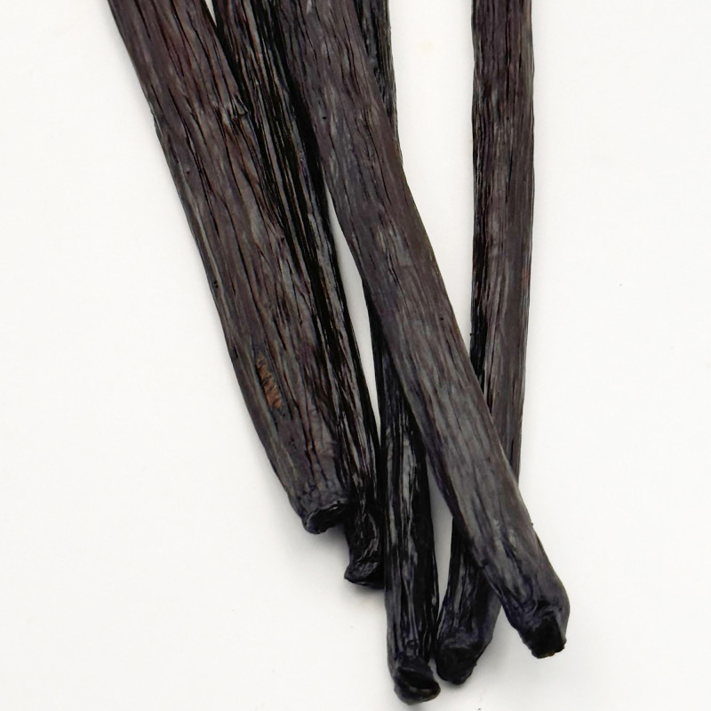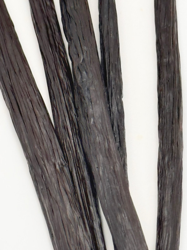 Cultivées sur les îles du sud de l'archipel de Vanuatu, dans l'océan Pacifique Sud, les gousses de vanille de Vanuatu sont également extrêmement rares. Foncés et charnus, les haricots regorgent de graines et ont une teneur élevée en huile et en humidité de 30 à 35 %. La vanille de Vanuatu est crémeuse avec une note principale florale et une note de cœur de cannelle Zeylanicum, de bois de santal, de cacao brut et de fruits jaunes. Excellent dans les recettes sucrées comme salées.