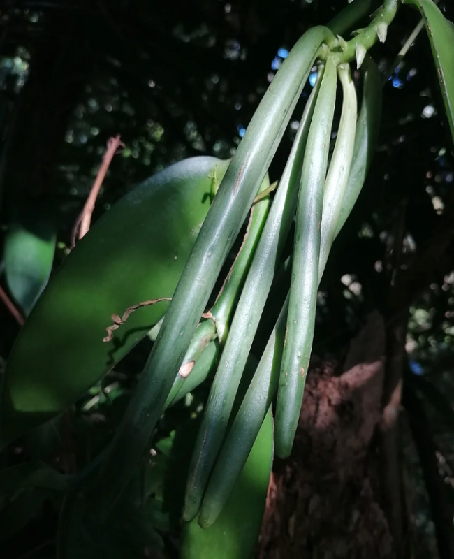 Sur le plan sensoriel, l’expérience commence par une note affirmée de réglisse, profonde et envoûtante, à laquelle se mêlent des touches suaves de coumarine, évoquant la fève tonka, tandis qu’en arrière-plan se dessinent des nuances de feuille de tabac séchée et de caramel beurré qui apportent chaleur et gourmandise. En bouche, la palette se déploie encore, laissant apparaître des accents inattendus et séduisants de maraschino et de banane mûre, conférant à cette vanille une signature aromatique unique au monde, capable de transformer les recettes les plus simples en créations sophistiquées, et les préparations les plus élaborées en véritables œuvres sensorielles.