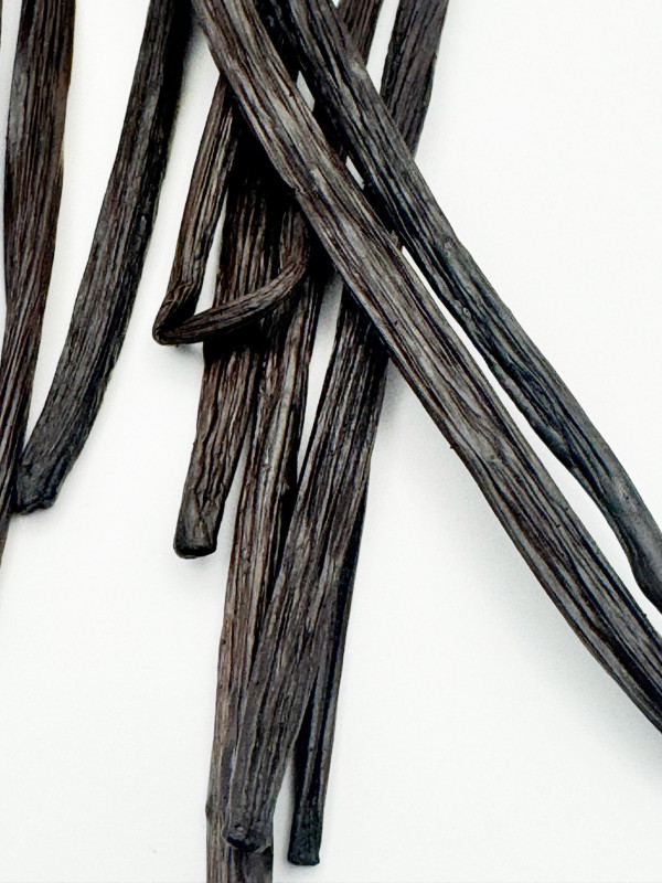 Ce qui distingue particulièrement cette vanille des autres, c’est qu’elle est proposée fraîche, c’est-à-dire non échaudée, non fendue et non séchée, ce qui préserve intactes toutes ses huiles essentielles et sa teneur en eau, et permet aux arômes de continuer à évoluer avec le temps, gagnant en rondeur et en profondeur au fil des semaines et des mois. Les gousses, longues d’environ dix-neuf centimètres et pesant en moyenne cinq grammes, présentent un taux d’humidité exceptionnel, proche de quarante pour cent, et un taux de vanilline d’environ deux virgule deux pour cent, garantissant une intensité gustative et olfactive remarquable. Leur texture souple et légèrement huileuse, leur brillance naturelle et leur parfum puissant en font un ingrédient d’exception aussi bien pour les artisans que pour les passionnés de gastronomie recherchant un produit singulier.