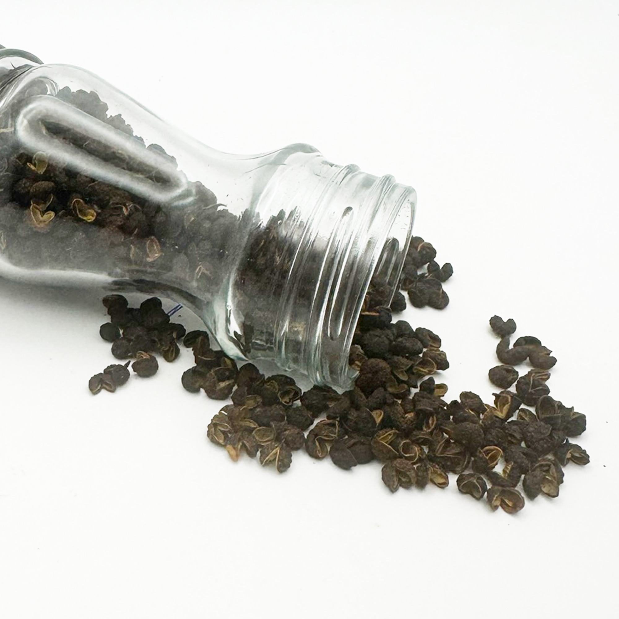 D'origine népalaise, cette baie timut se récolte dans des petits arbres endémiques de l'espèce des Zanthoxylum armatum de la famille des Rustacées.
